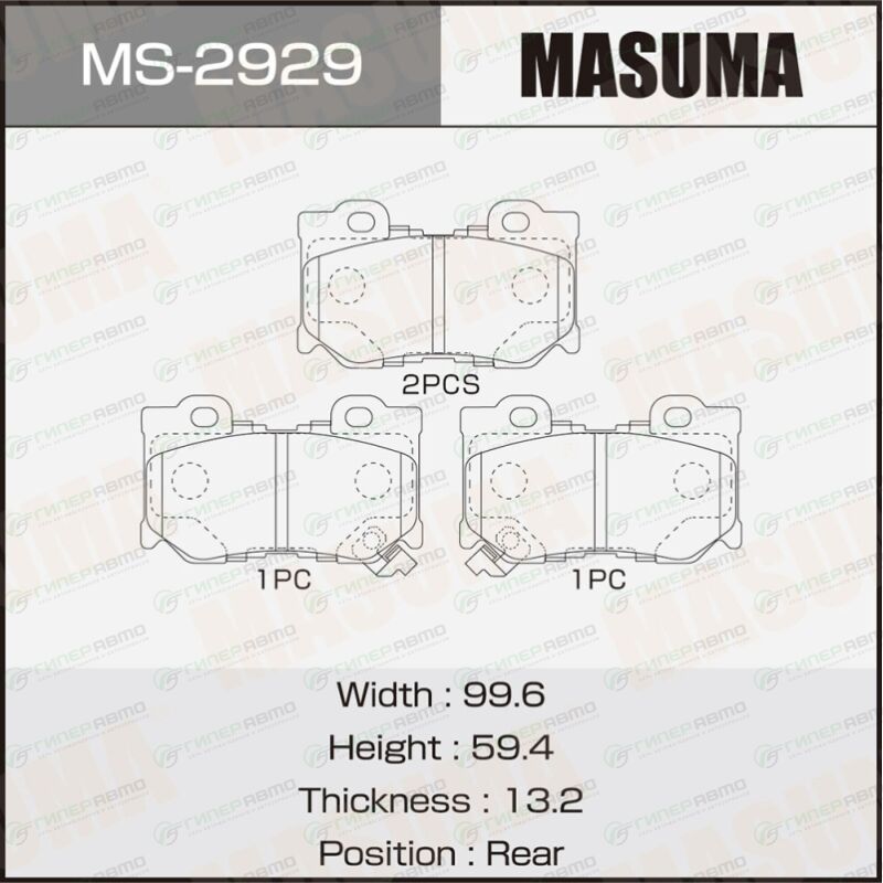 Вы можете купить колодки тормозные дисковые masuma, задние, комплект на ось (4 шт), арт. ms-2929 в интернет-магазине колодок Гиперавто. Цена на MASUMA MS-2929, описание, характеристики и фотографии.