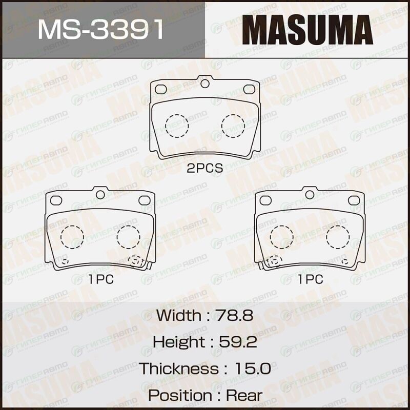 MASUMA MS-3391. Купить колодки тормозные дисковые masuma задние, комплект на ось (4 шт), арт. ms-3391 по выгодной цене в интернет-магазине запчастей Гиперавто. (40051)