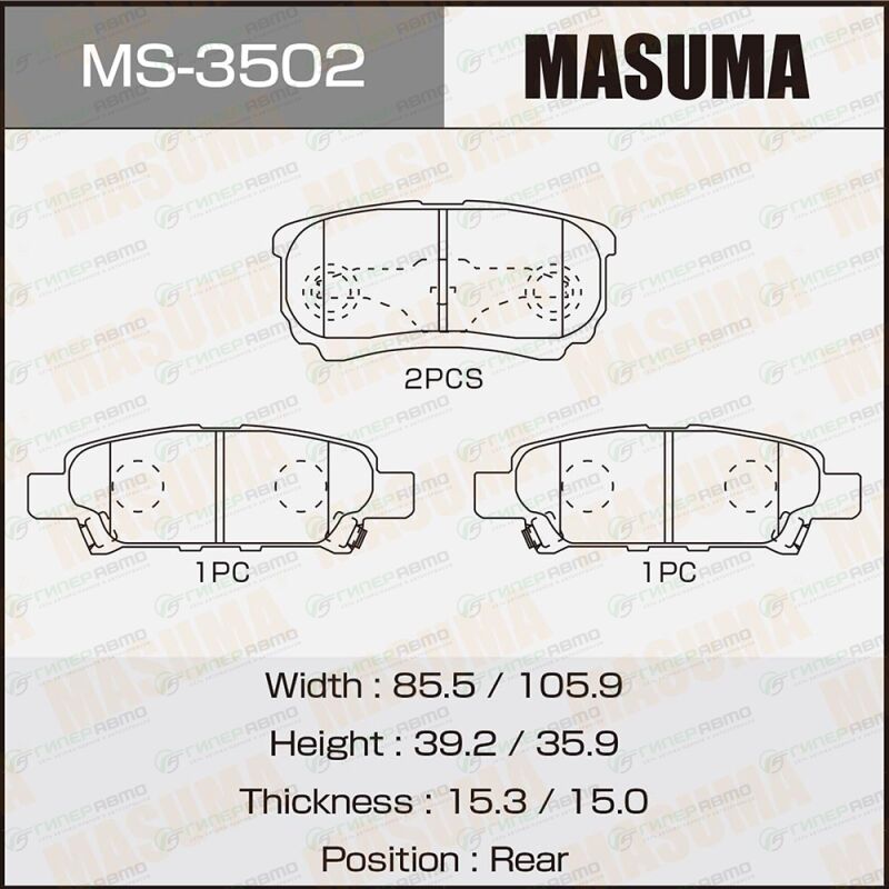 MASUMA MS-3502. Купить колодки тормозные дисковые masuma задние, комплект на ось (4 шт), арт. ms-3502 по выгодной цене в интернет-магазине запчастей Гиперавто. (38433)