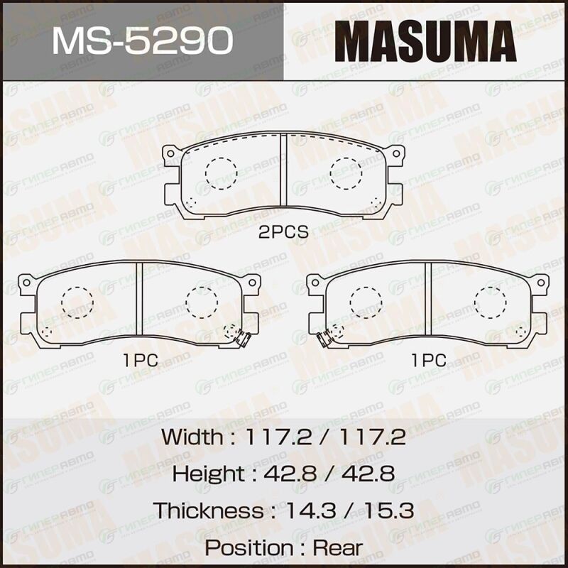 MASUMA MS-5290. Купить колодки тормозные дисковые masuma задние, комплект на ось (4 шт), арт. ms-5290 по выгодной цене в интернет-магазине запчастей Гиперавто. (11600)