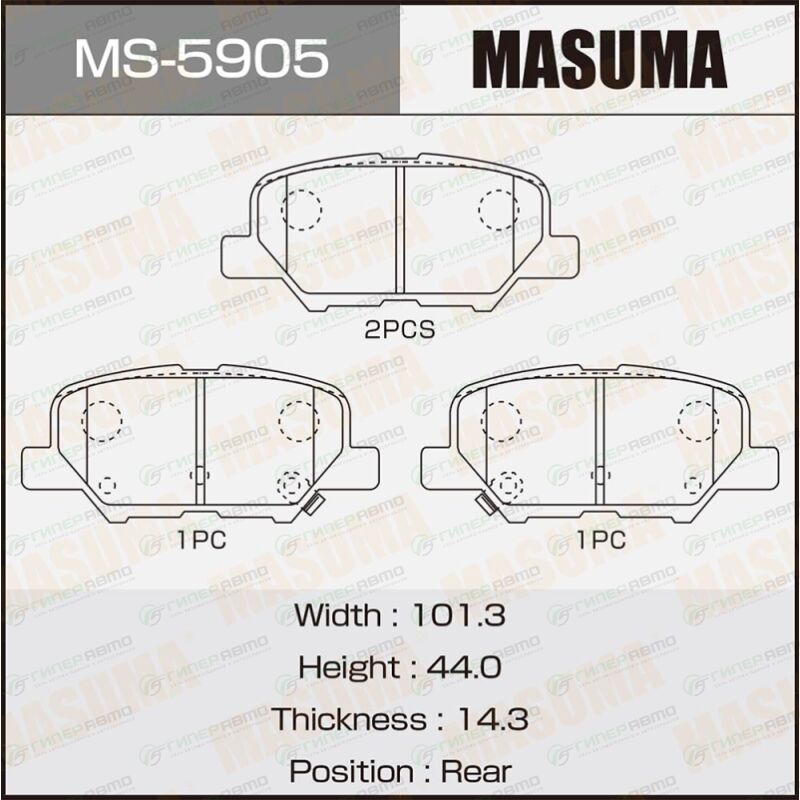 MASUMA MS-5905. Купить колодки тормозные дисковые masuma задние, комплект на ось (4 шт), арт. ms-5905 по выгодной цене в интернет-магазине запчастей Гиперавто. (55340)