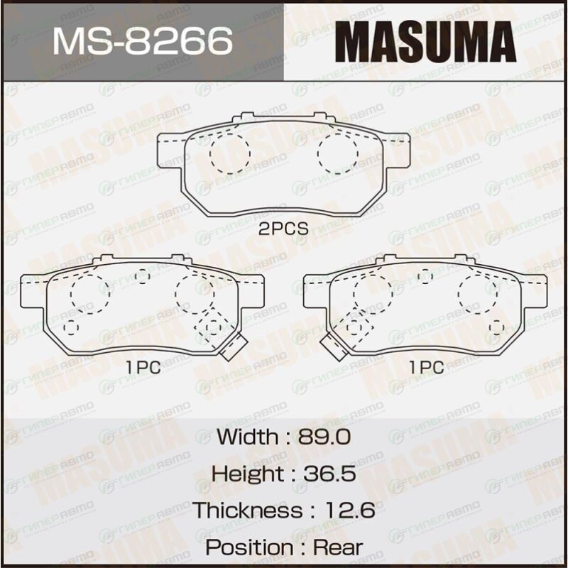 MASUMA MS-8266. Купить колодки тормозные дисковые masuma задние, комплект на ось (4 шт), арт. ms-8266 по выгодной цене в интернет-магазине запчастей Гиперавто. (11532)