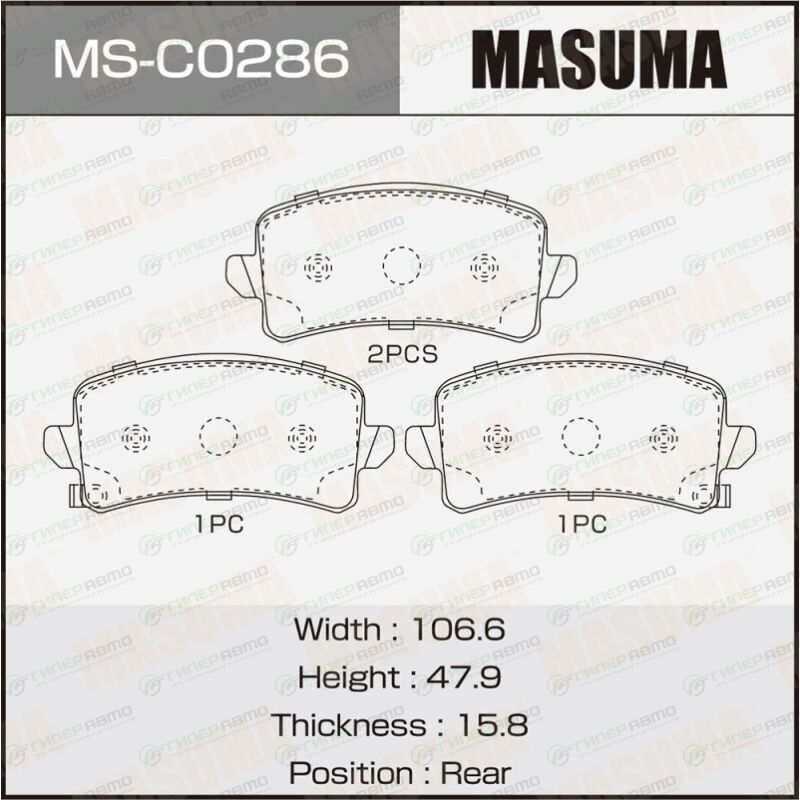 Вы можете купить колодки тормозные дисковые masuma, задние, комплект на ось (4 шт), арт. ms-c0286 в интернет-магазине колодок Гиперавто. Цена на MASUMA MS-C0286, описание, характеристики и фотографии.