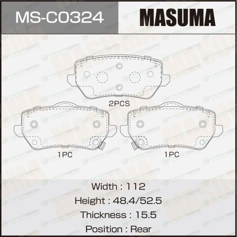 Вы можете купить колодки тормозные дисковые masuma, задние, комплект на ось (4 шт), арт. ms-c0324 в интернет-магазине колодок Гиперавто. Цена на MASUMA MS-C0324, описание, характеристики и фотографии.