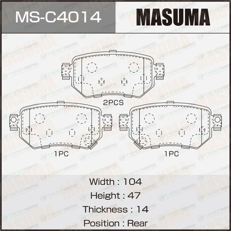 Колодки тормозные дисковые Masuma, задние, комплект на ось (4 шт), арт. MS-C4014