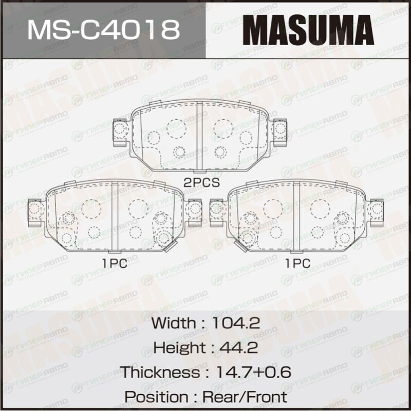 Вы можете купить колодки тормозные дисковые masuma, задние, комплект на ось (4 шт), арт. ms-c4018 в интернет-магазине колодок Гиперавто. Цена на MASUMA MS-C4018, описание, характеристики и фотографии.