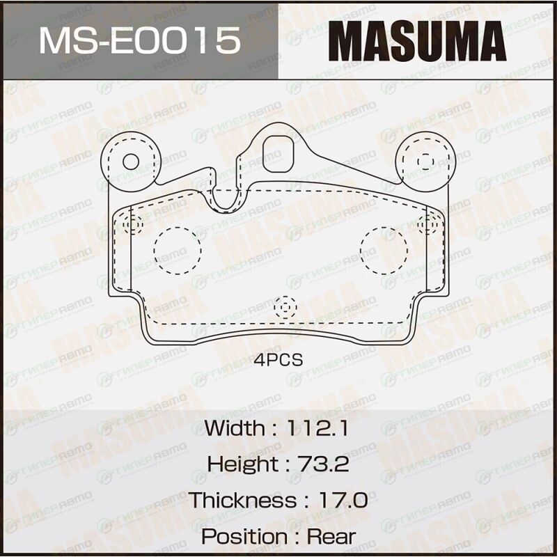 Вы можете купить колодки тормозные дисковые masuma задние, комплект на ось (4 шт), арт. ms-e0015 в интернет-магазине колодок Гиперавто. Цена на MASUMA MS-E0015, описание, характеристики и фотографии.