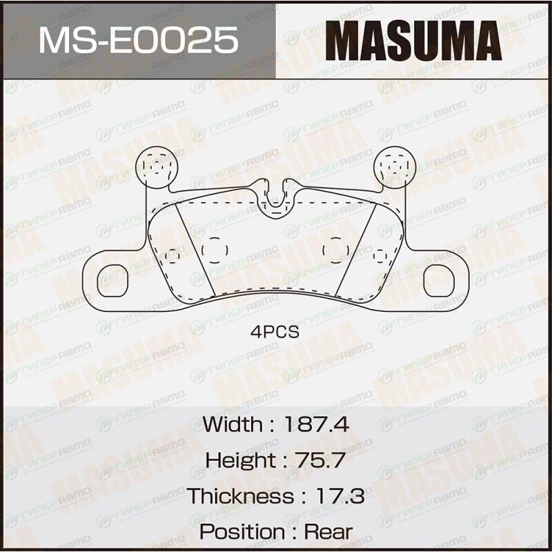 MASUMA MS-E0025. Купить колодки тормозные дисковые masuma задние, комплект на ось (4 шт), арт. ms-e0025 по выгодной цене в интернет-магазине запчастей Гиперавто. (50676)