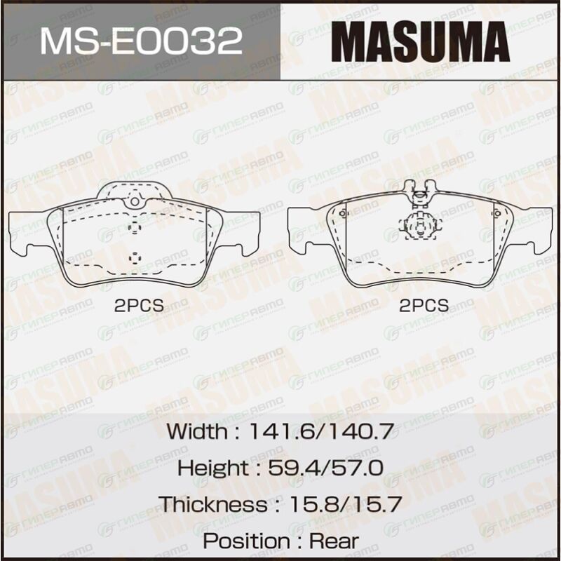 MASUMA MS-E0032. Купить колодки тормозные дисковые masuma задние, комплект на ось (4 шт), арт. ms-e0032 по выгодной цене в интернет-магазине запчастей Гиперавто. (67835)