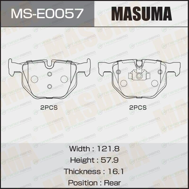 MASUMA MS-E0057. Купить колодки тормозные дисковые masuma задние, комплект на ось (4 шт), арт. ms-e0057 по выгодной цене в интернет-магазине запчастей Гиперавто. (69418)