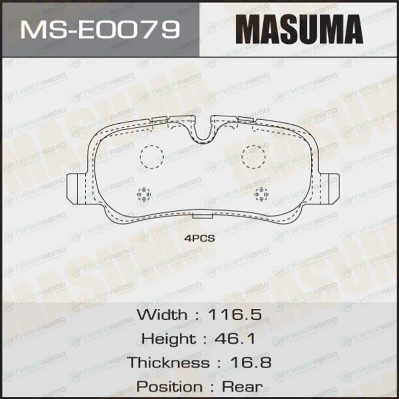 MASUMA MS-E0079. Купить колодки тормозные дисковые masuma задние, комплект на ось (4 шт), арт. ms-e0079 по выгодной цене в интернет-магазине запчастей Гиперавто. (68352)