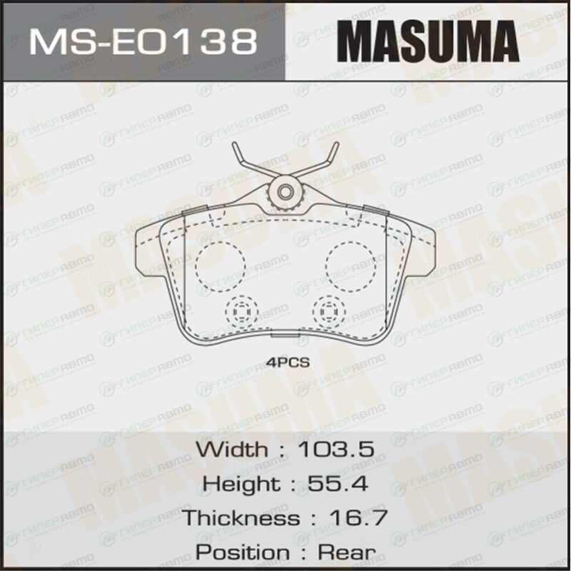 MASUMA MS-E0138. Купить колодки тормозные дисковые masuma задние, комплект на ось (4 шт), арт. ms-e0138 по выгодной цене в интернет-магазине запчастей Гиперавто. (68221)