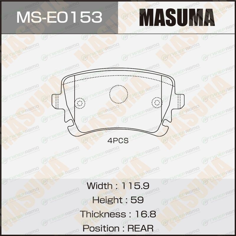 MASUMA MS-E0153. Купить колодки тормозные дисковые masuma, задние, комплект на ось (4 шт), арт. ms-e0153 по выгодной цене в интернет-магазине запчастей Гиперавто. (73403)