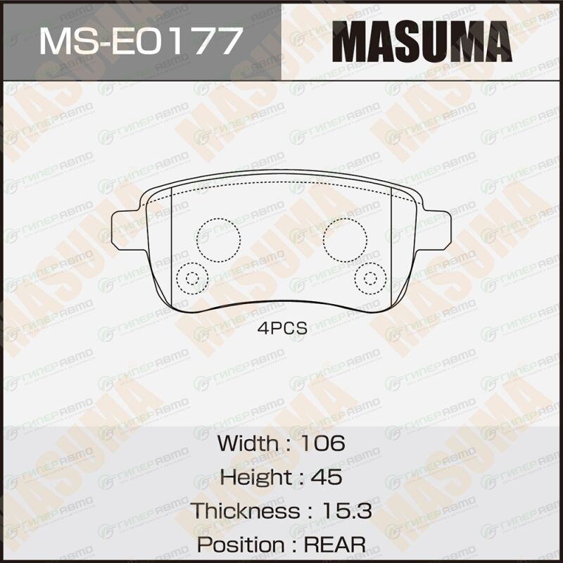 MASUMA MS-E0177. Купить колодки тормозные дисковые masuma, задние, комплект на ось (4 шт), арт. ms-e0177 по выгодной цене в интернет-магазине запчастей Гиперавто. (73404)