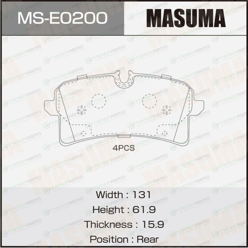 Вы можете купить колодки тормозные дисковые masuma, задние, комплект на ось (4 шт), арт. ms-e0200 в интернет-магазине колодок Гиперавто. Цена на MASUMA MS-E0200, описание, характеристики и фотографии.