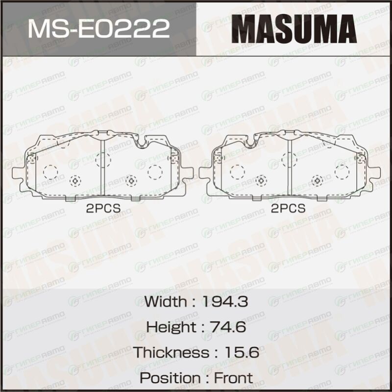 MASUMA MS-E0222. Купить колодки тормозные дисковые masuma, задние, комплект на ось (4 шт), арт. ms-e0222 по выгодной цене в интернет-магазине запчастей Гиперавто. (76930)