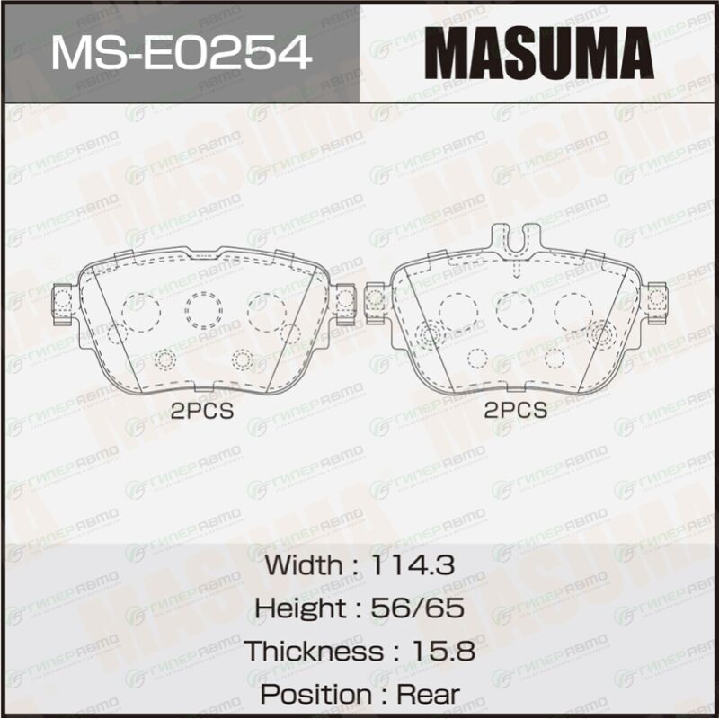 Вы можете купить колодки тормозные дисковые masuma, задние, комплект на ось (4 шт), арт. ms-e0254 в интернет-магазине колодок Гиперавто. Цена на MASUMA MS-E0254, описание, характеристики и фотографии.