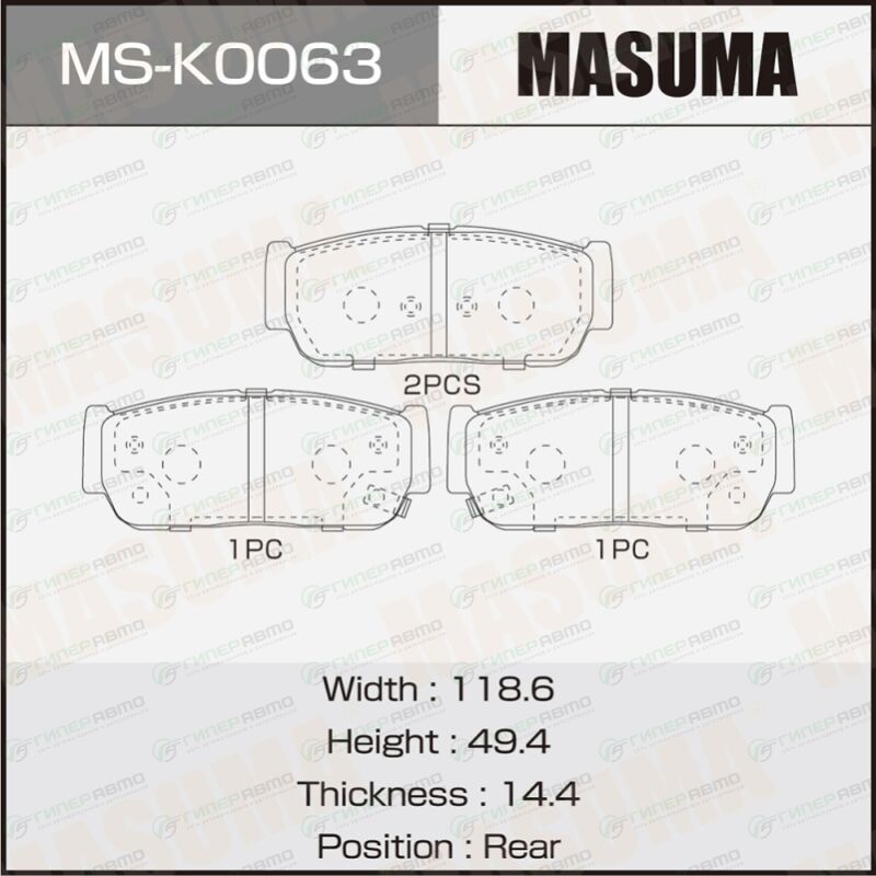 Вы можете купить колодки тормозные дисковые masuma, задние, комплект на ось (4 шт), арт. ms-k0063 в интернет-магазине колодок Гиперавто. Цена на MASUMA MS-K0063, описание, характеристики и фотографии.