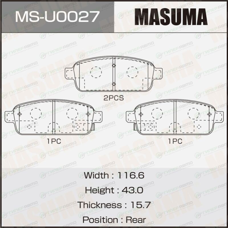 MASUMA MS-U0027. Купить колодки тормозные дисковые masuma, задние, комплект на ось (4 шт), арт. ms-u0027 по выгодной цене в интернет-магазине запчастей Гиперавто. (73590)