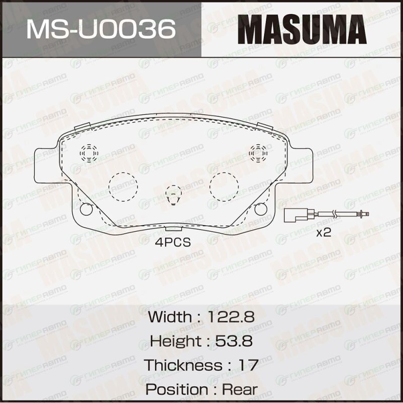 MASUMA MS-U0036. Купить колодки тормозные дисковые masuma, задние, комплект на ось (4 шт), арт. ms-u0036 по выгодной цене в интернет-магазине запчастей Гиперавто. (76709)