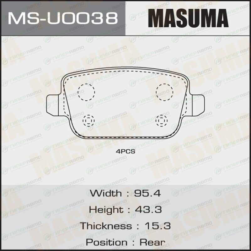 MASUMA MS-U0038. Купить колодки тормозные дисковые masuma задние, комплект на ось (4 шт), арт. ms-u0038 по выгодной цене в интернет-магазине запчастей Гиперавто. (50659)