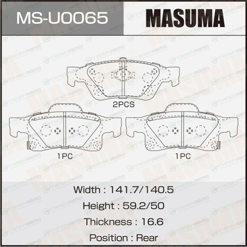 MASUMA MS-U0065. Купить колодки тормозные дисковые masuma, задние, комплект на ось (4 шт), арт. ms-u0065 по выгодной цене в интернет-магазине запчастей Гиперавто. (76543)