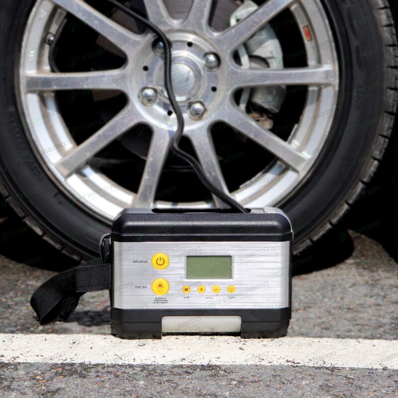 Компактный и удобный. Можно выставить нужное давление к примеру 2.2 и компрессор запомнит его, не нужно будет вводить каждый раз при подключении. Провода, шланги и насадки складываются в компрессор в специальные ячейки ( теперь не что не где не валяется в сумке ). В комплекте так же встроенный фонарик, что очень удобно в темное время суток. Точность давления показывает четко, проверял манометром. Так же присутствует тестер аккумулятора и генератора что тоже является большим плюсом ( но использоваться будет редко )