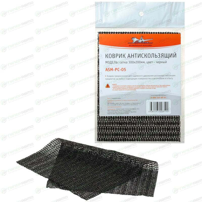 Антискользящий коврик черного цвета с поверхностью «сетка» и размерными показателями 300х200 мм устанавливается на плоской поверхности панели автомобиля и играет роль фиксатора мелких предметов во время движения авто. При необходимости изделие можно обрезать для получения желаемого размера.