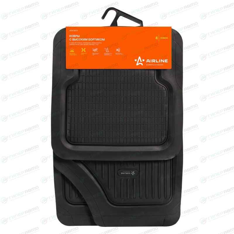 Вы можете купить коврики универсальные airline, для переднего и заднего ряда, полимер, черный цвет, с высоким бортом, 4шт в интернет-магазине автомобильных ковриков Гиперавто. Цена на AIRLINE ACM-RM-01, описание, характеристики и фотографии.