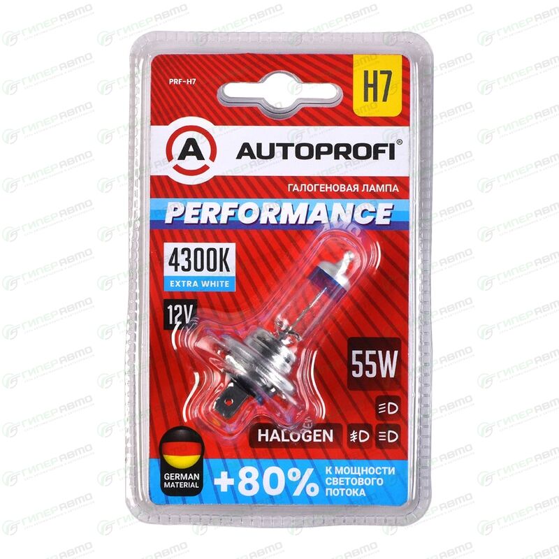 Вы можете купить лампа галогенная autoprofi performance h7 (px26d, t11), 12в, 55вт, 4300к, 1 шт, арт. prf-h7 в интернет-магазине автомобильных ламп Гиперавто. Цена на AUTOPROFI PRF-H7, описание, характеристики и фотографии.