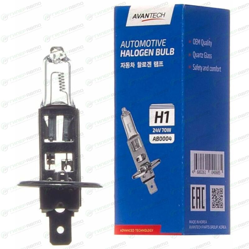 Вы можете купить лампа галогенная avantech halogen bulb h1 (p14.5s, t8), 24в, 70вт, 3200к, арт. ab0004 в интернет-магазине автомобильных ламп Гиперавто. Цена на AVANTECH AB0004, описание, характеристики и фотографии.