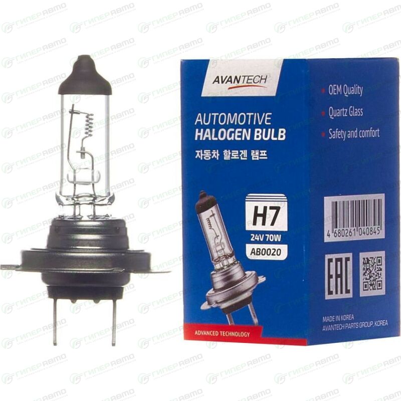 Вы можете купить лампа галогенная avantech halogen bulb h7 (px26d, t11), 24в, 70вт, 3200к, 1 шт, арт. ab0020 в интернет-магазине автомобильных ламп Гиперавто. Цена на AVANTECH AB0020, описание, характеристики и фотографии.