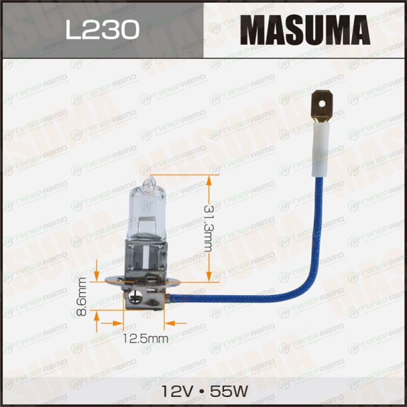 Вы можете купить лампа галогенная masuma clearglow h3 (pk22s, t12), 12в, 55вт, 3000к, 1 шт, арт. l230 в интернет-магазине автомобильных ламп Гиперавто. Цена на MASUMA L230, описание, характеристики и фотографии.