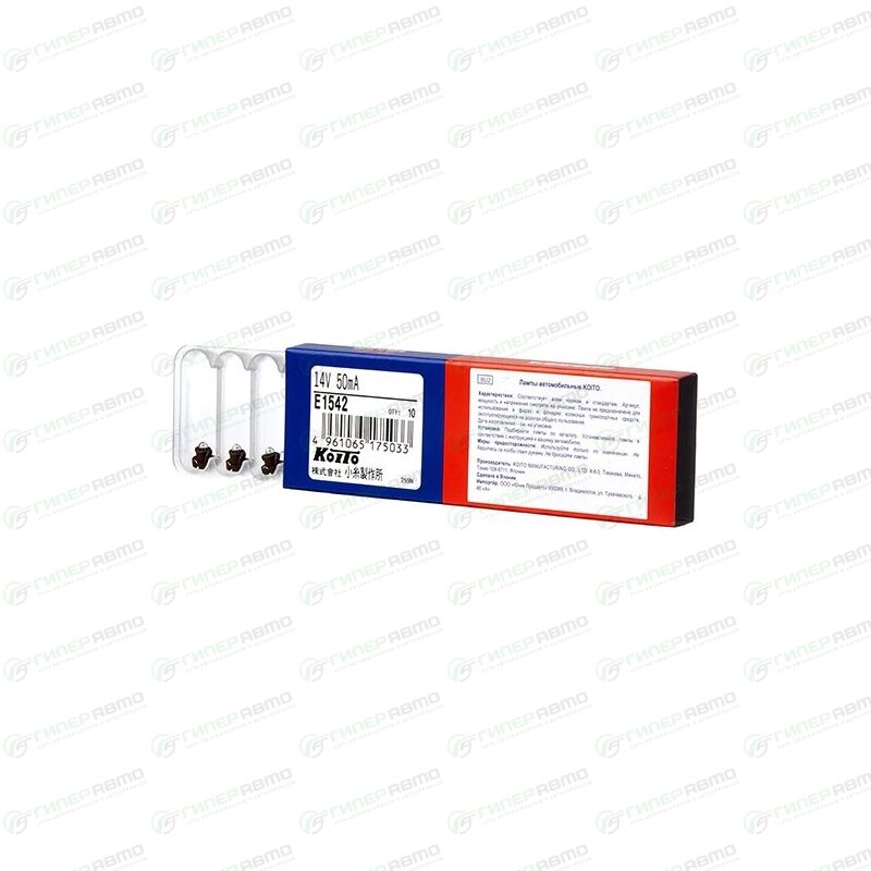 Вы можете купить лампа koito bax (пластиковый цоколь, t3), 14в, 0.7вт, арт. e1542 в интернет-магазине автомобильных ламп Гиперавто. Цена на KOITO E1542, описание, характеристики и фотографии.