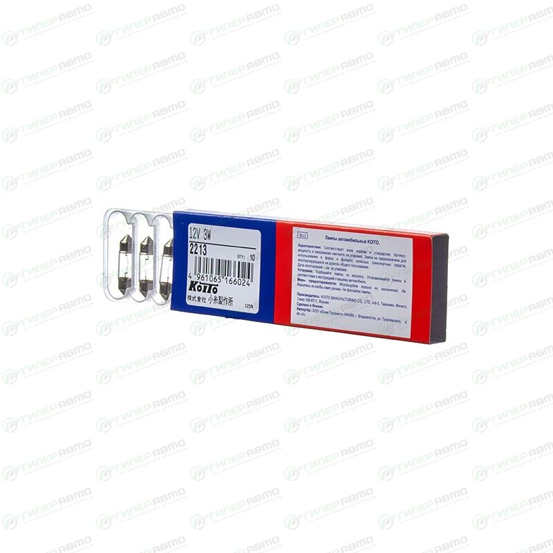 Вы можете купить лампа koito festoon (sv7, t8x28), 12в, 3вт, арт. 2213 в интернет-магазине автомобильных ламп Гиперавто. Цена на KOITO 2213, описание, характеристики и фотографии.