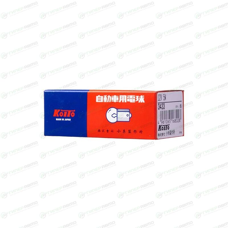 Вы можете купить лампа koito r5w (ba15s, g18), 5в, 12вт, арт. 3433 в интернет-магазине автомобильных ламп Гиперавто. Цена на KOITO 3433, описание, характеристики и фотографии.