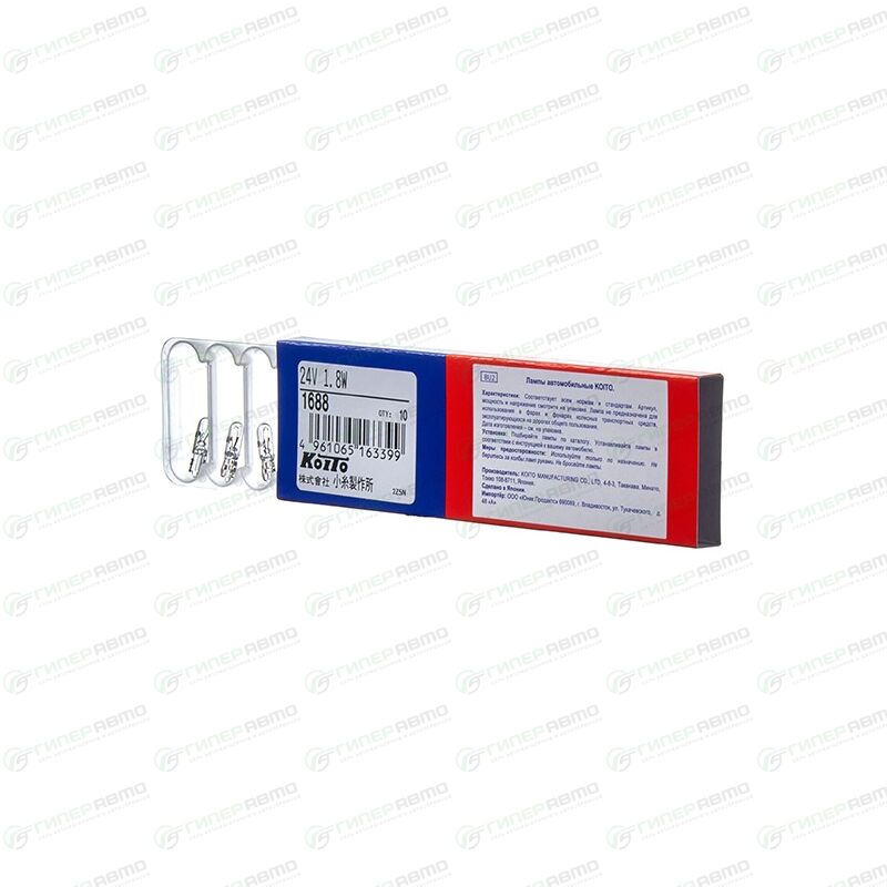 Вы можете купить лампа koito w1.8w (w2x4.6d, t5), 24в, 1.8вт, арт. 1688 в интернет-магазине автомобильных ламп Гиперавто. Цена на KOITO 1688, описание, характеристики и фотографии.