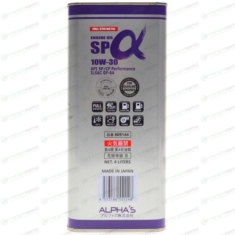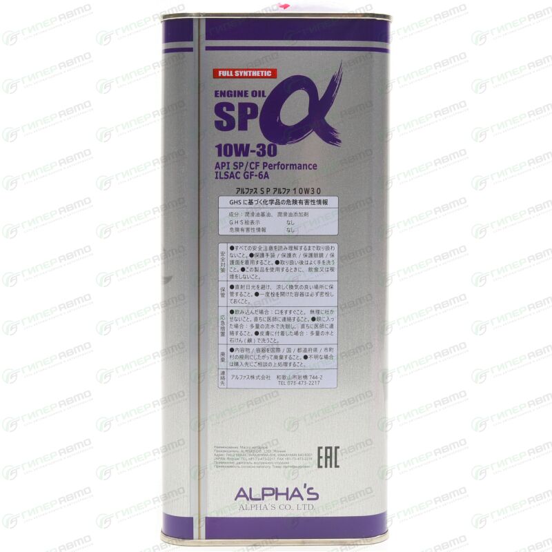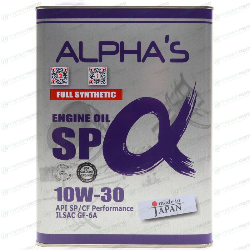 Масло моторное ALPHA'S 10w30 синтетическое, API SP/CF, ILSAC GF-6A