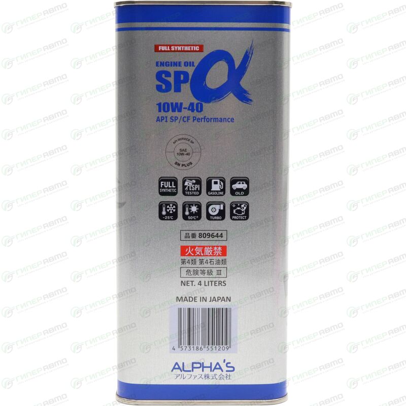 Моторное масло Alpha's SN 10W40 - это высококачественный японский продукт, разработанный в соответствии с самыми требовательными мировыми стандартами, оптимально подходит для автомобилей с большим пробегом и длительной эксплуатацией. Масло Alpha's SN 10W40 широко применяется в старых автомобилях. Данное масло образует прочную пленку даже в тяжелых условиях эксплуатации, будучи устойчивым и активнодействующим. Оно должным образом проявляет не только износостойкие, но и моющие и антикоррозийные свойства, а также предотвращает коррозию подшипников и реализует другие характеристики, изначально требующиеся от масла. Обеспечивает надежную защиту двигателя.