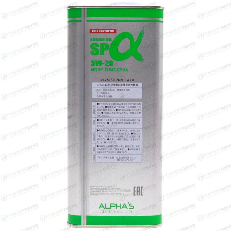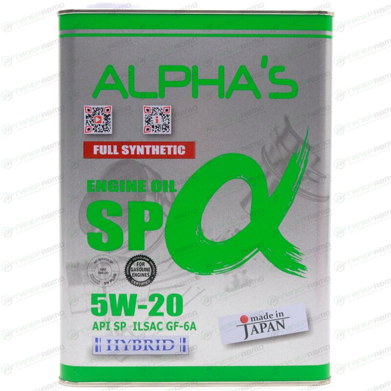 Масло моторное ALPHA'S 5w20 API SN PLUS/SP, ILSAC GF-5/GF-6A