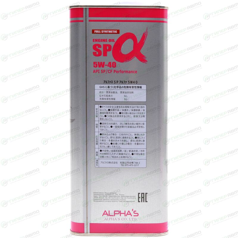 Масло моторное ALPHA'S 5w40 SN PLUS/SP/CF