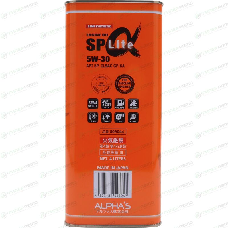 Вы можете купить масло моторное alpha's lite 5w30, полусинтетическое, api sp, ilsac gf-6a, универсальное, 4л, арт. 809044 в интернет-магазине моторных масел Гиперавто. Цена на ALPHA'S 809044, описание, характеристики и фотографии.
