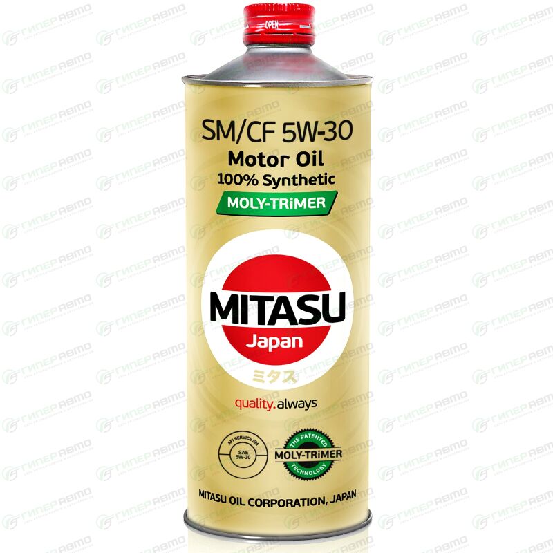 MITASU MOLY-TRiMER SM/CF 5W-30 100% Synthetic предназначено для всесезонного использования в современных бензиновых и дизельных двигателях легковых автомобилей, минивэнов, SUV и легких грузовиков, в том числе оснащенных системами непосредственного впрыска, механизмами изменения фаз газораспределения и турбонаддувом.