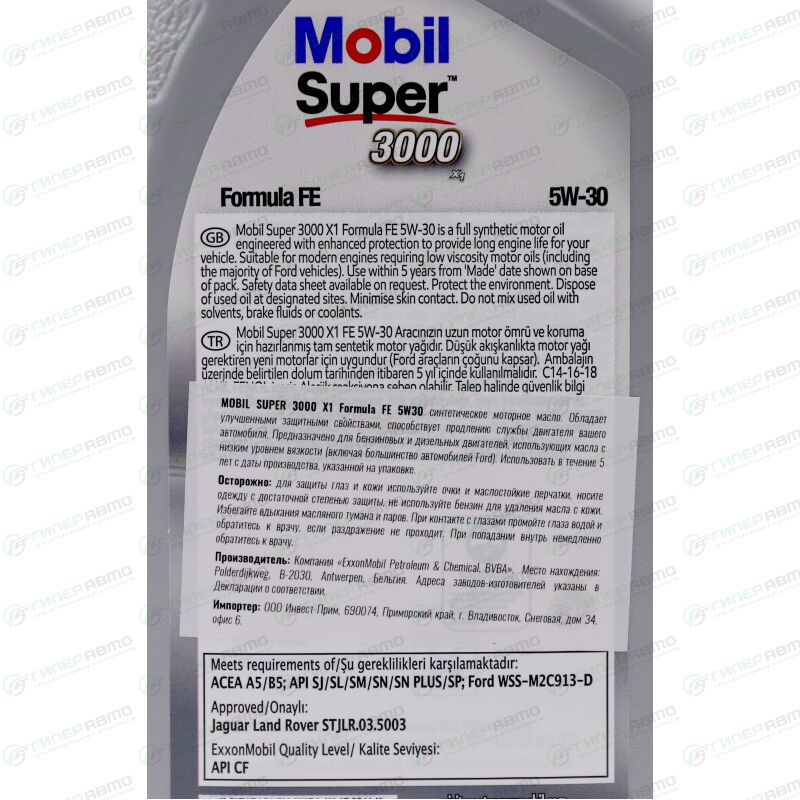 - Масло Mobil Super 3000 x1 Formula FE 5W-30 разработано в первую очередь в соответствии с требованиями компании Ford ко всем двигателям, соответствующим WSS-M2C913-D / C, а также пригодно к применению в автомобилях марок Jaguar и Land Rover, где требуются соответствующие параметры вязкости и качества.