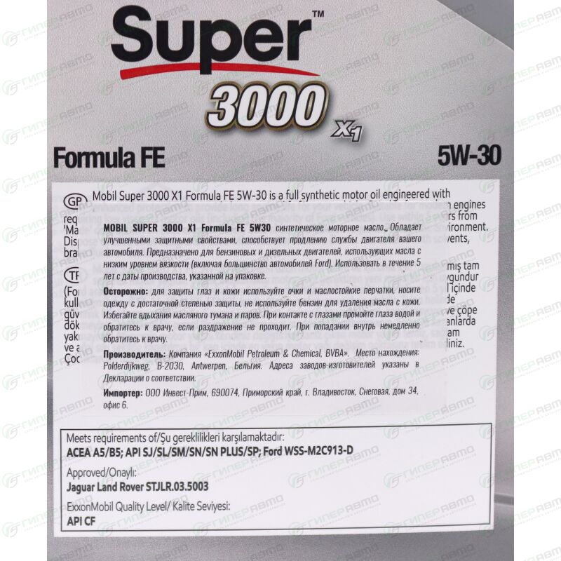 - Масло Mobil Super 3000 x1 Formula FE 5W-30 разработано в первую очередь в соответствии с требованиями компании Ford ко всем двигателям, соответствующим WSS-M2C913-D / C, а также пригодно к применению в автомобилях марок Jaguar и Land Rover, где требуются соответствующие параметры вязкости и качества.