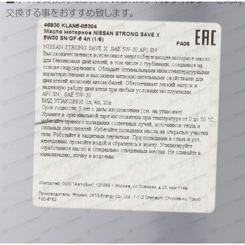 Высококачественное всесезонное энергосберегающее моторное масло для бензиновых двигателей, в том числе с турбинами, созданное на основе гидрокрекинга. Обладает оптимальными низкотемпературными характеристиками и высокими антиокислительными свойствами для двигателей японских автомобилей. Обеспечивает лёгкий запуск и надёжную работу двигателя при любых условиях эксплуатации.
