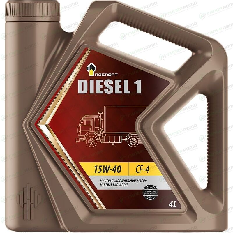 Rosneft Diesel 1 15W-40 — всесезонное минеральное моторное масло, разработанное для применения в дизельных двигателях коммерческой техники, требующих применения масел, соответствующих требованиям спецификации API CF‑4. Масло изготавливается с использованием высококачественных базовых масел и современного пакета присадок. Одобрено ведущими российскими производителями коммерческой техники.