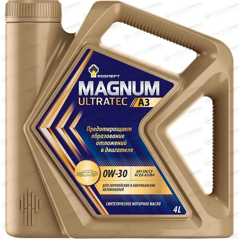 Rosneft Magnum Ultratec A3 0W-30 — всесезонное полностью синтетическое моторное масло, предотвращающее образование отложений, обеспечивая надежную защиту и длительный срок службы двигателя, в том числе в условиях активной городской езды. Моторное масло Rosneft Magnum Ultratec A3 0W-30 предназначено для применения в современных бензиновых и дизельных двигателях легковых автомобилей и лёгкой коммерческой техники, в том числе оборудованных турбонаддувом, где необходимо применение масел, соответствующих требованиям API SN/CF, АСЕА А3/В4 или одной из нижеуказанных ОЕМ-спецификаций.