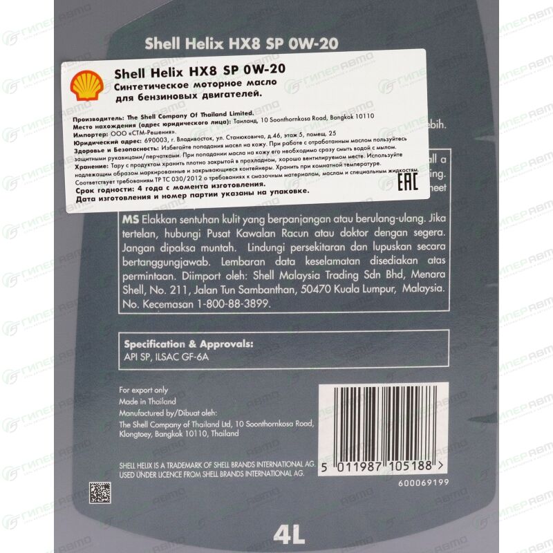 Полностью синтетическое моторное масло с высоким уровнем эксплуатационных свойств, моющими характеристиками и повышенной защитой. Моторное масло Shell Helix HX8 обеспечивает высокий уровень защиты и чистоты современных бензиновых двигателей. Помогает снизить трение для повышения топливной экономичности.
