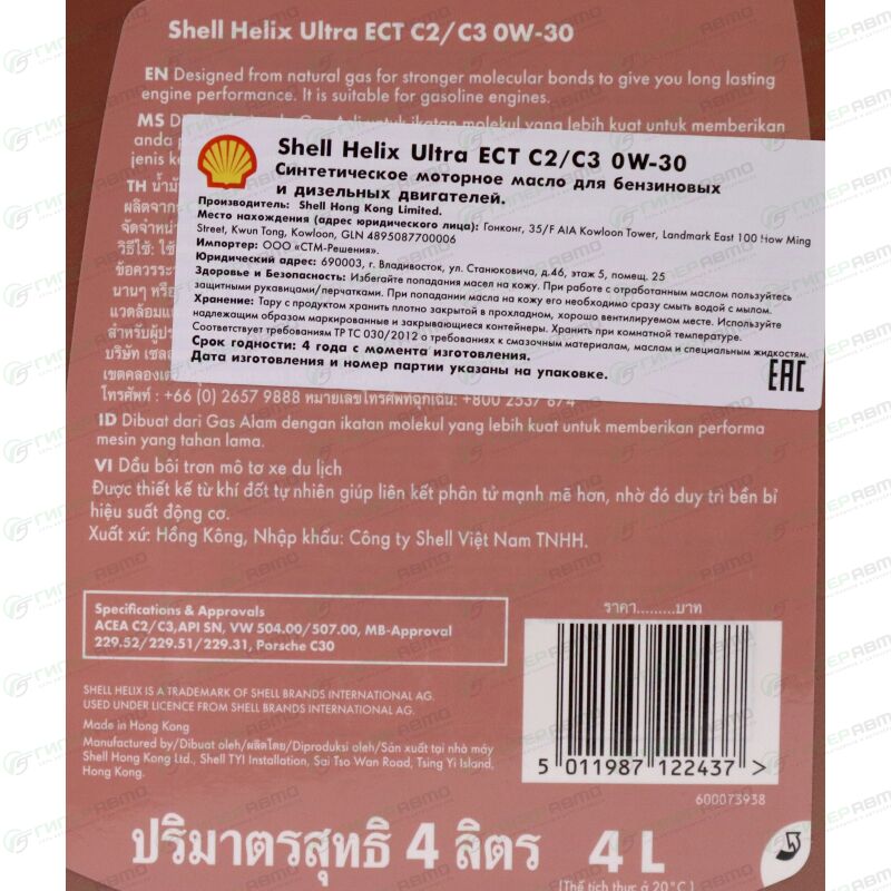 Shell Helix Ultra ECT C2/C3 может использоваться для современных бензиновых двигателей, дизельных двигателей, оснащенных сажевыми фильтрами, а также для газовых двигателей. Shell Helix Ultra ECT C2/C3 0W-30 подходит для использования в машинах c SAE 5W-30 или 10W-30, обеспечивает улучшенную защиту двигателя и экономию топлива.